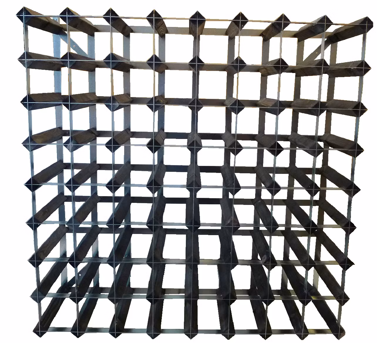 Exempel: förvaring av 144 stycken vinflaskor. 2 stycken vinställ byggda på varandra med hjälp av clips får en höjd på 1740 mm och bredd på 81 mm